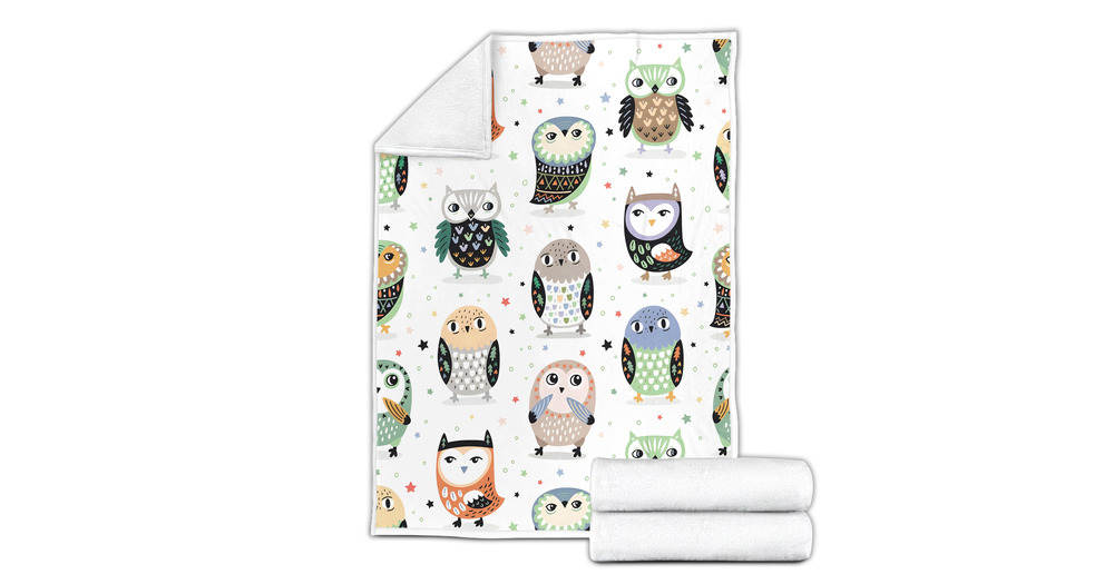 Cute Owl Fleece Blanket – Colorful Cartoon Owl Pattern Throw, Nursery Forest Ani