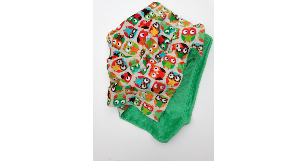Owl Print Minky Baby Blanket: Green Dot Crib Blanket (36 x 45 inch)