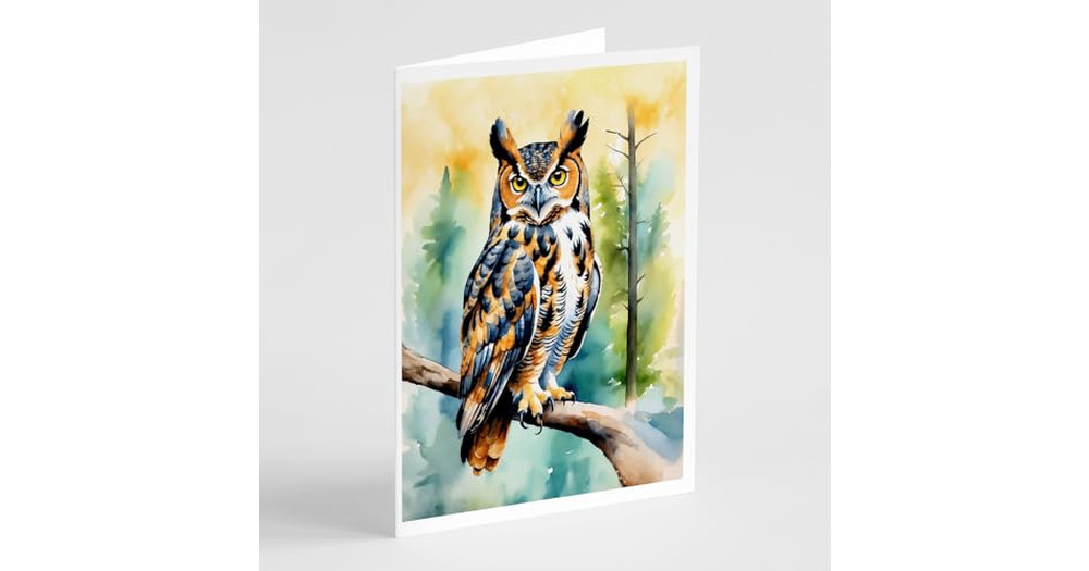 Caroline's Treasures Great Horned Owl Greeting Cards Pack of 8 Blank Cards with Envelopes Whims