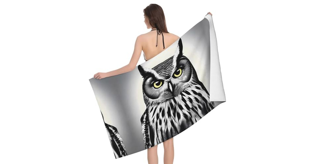 sttnnper Colorless Owl Print Microfiber Bath Towels – Soft, Absorbent, and Versat