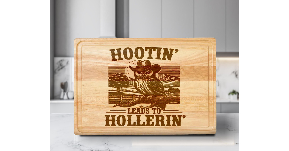 Owl Cowboy Hat Cutting Board SVG Laser Engraved File Design, Charcuterie Board