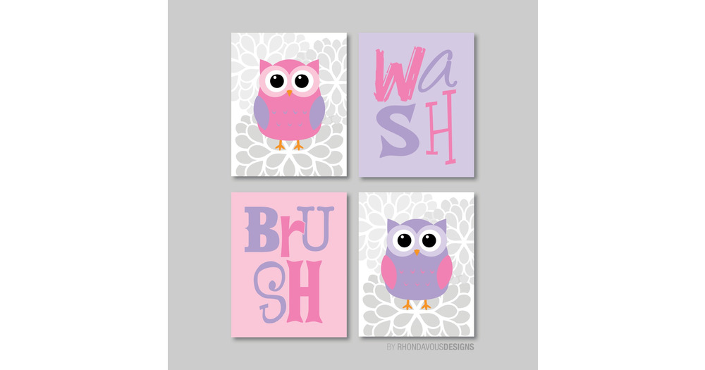 Owl Bathroom Art Prints – Kids Bathroom Decor, Set of 4