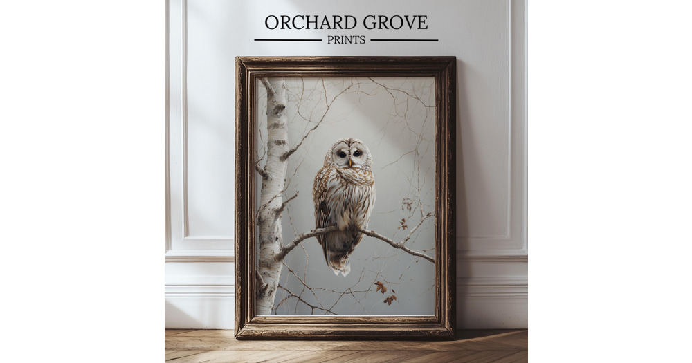 Moody Owl Wall Art, Rustic Owl Print, Birch Tree Art, Neutral Cottagecore Animal Decor, Farmhouse Ow
