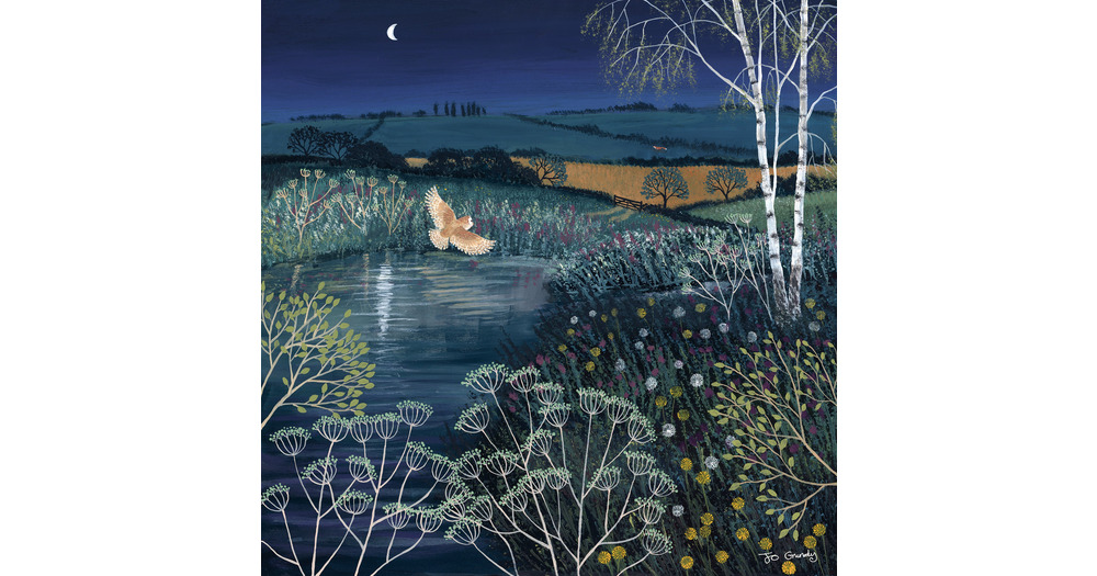 Canvas print of a night scene with owl in flight from an original painting 'Over Moonlit Pool