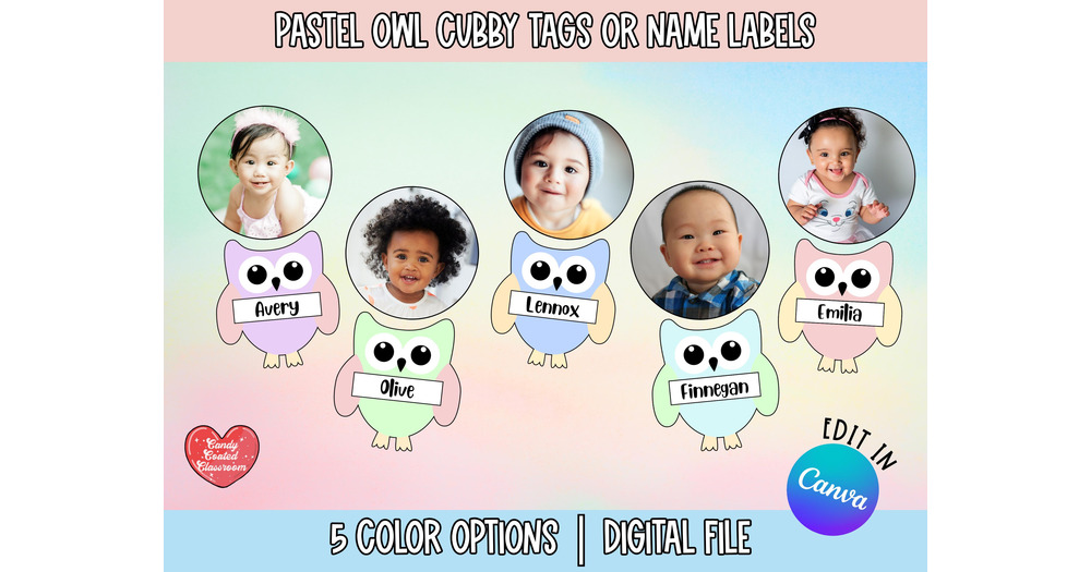 Pastel Owl Cubby Name Tags, Personalized Desk Name Plates, School Name Labels, Colorful Preschool Ra