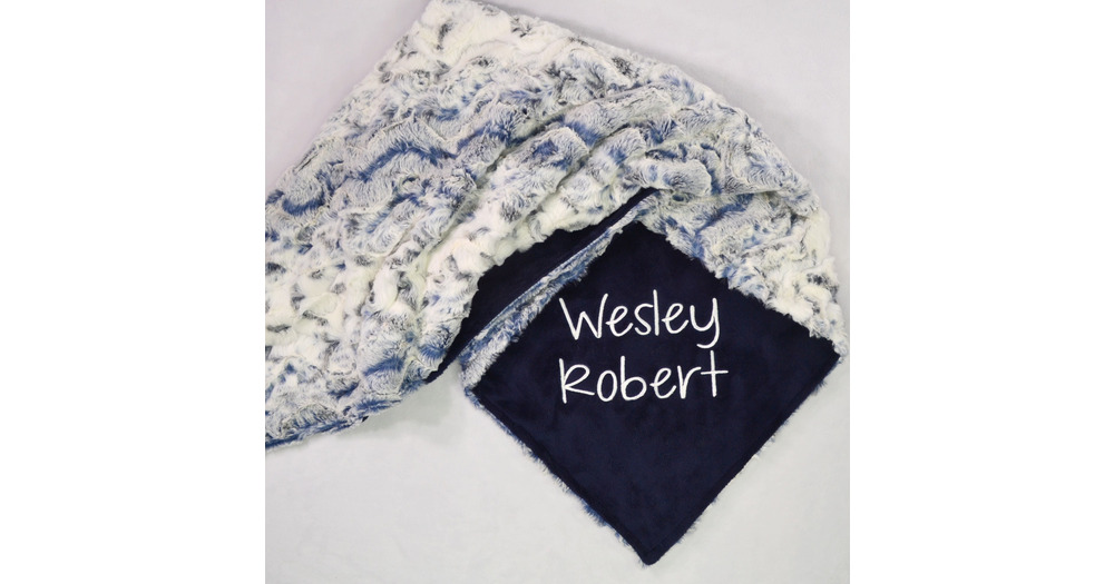 Navy Blue Snowy Owl Plush Minky Blanket, Personalized Blanket for Babies, Kids and Adults