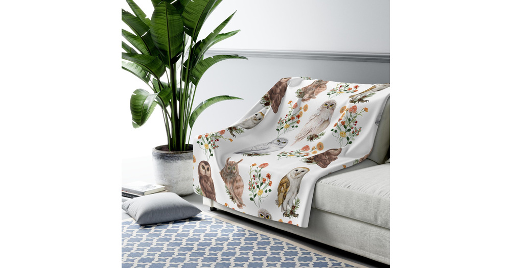 Woodland Owl Sherpa Fleece Blanket - Nature Blanket, Cottage Core Home Decor, Cozy Sofa Throw, Owl L
