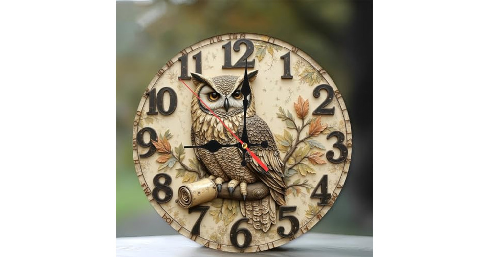 SEMARY Owl Wall Clock Vintage Home Decor Decorative Timepiece10-Inch Wooden Wall Clock, Silent Movem