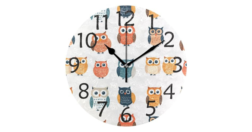 IRYULJX Cute Owl Lovely Silent Wall Clocks Battery Operated for Living Room 9.8 inch, Non-Ticking De
