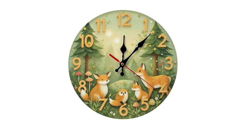 LISSAHNE Forest Foxes Owl Clock 2D-gigapixel-standard-width-3000px Wall Clock, Silent Non Ticking Ba