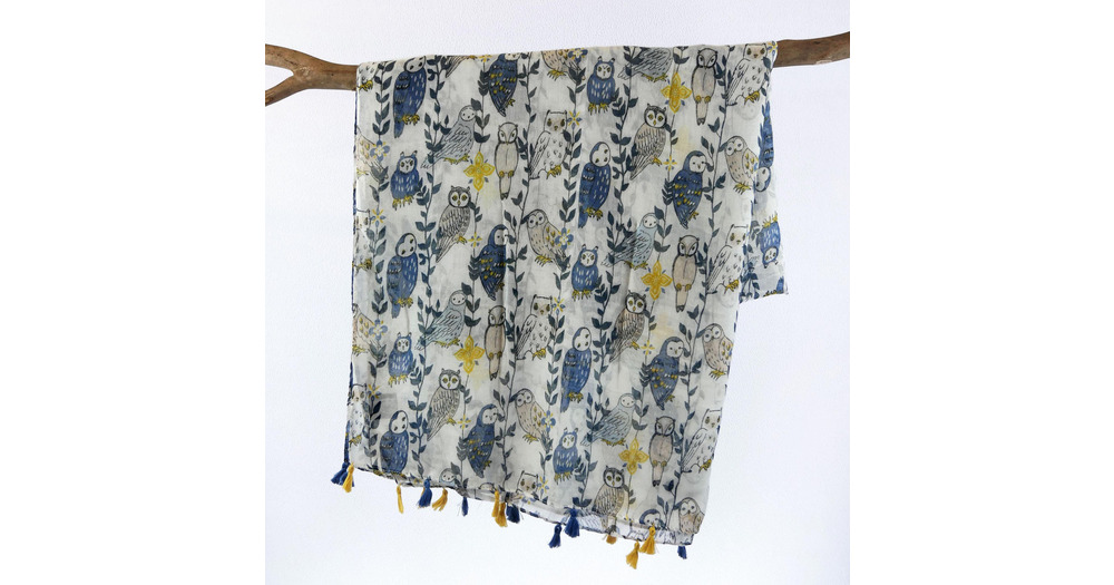 Owl Woman Scarf Boho Tassel Wrap Birthday Mother's Day Bird Lovers Gift For Her 73x33"