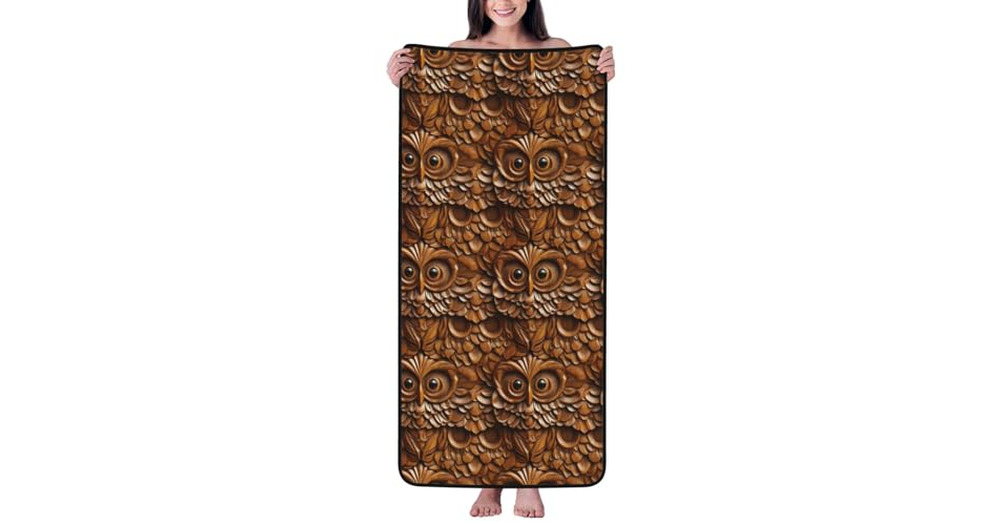 GVYGVY Cotton Bath Towels for Bathroom - Wood Grain Owl Print Microfiber Towels for Body Bath Sheets