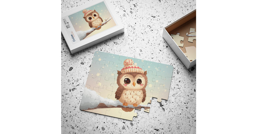 Winter Owl Puzzle for Kids 30 Piece Jigsaw, Snowy Forest Animal Activity, Preschool Learning Toy, Ho