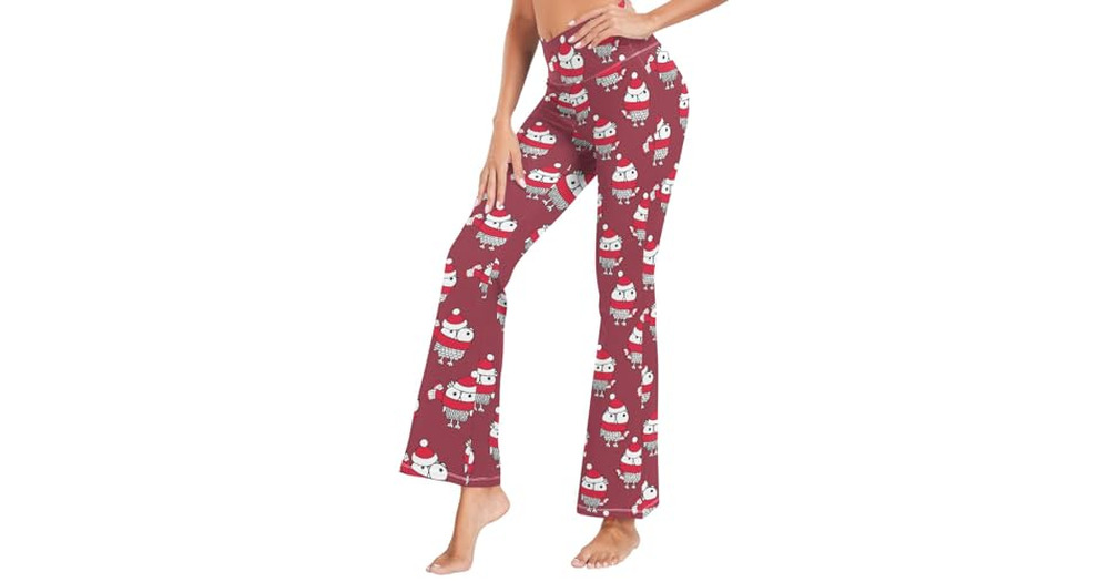 Dallonan Flare Yoga Pants Women Leggings High Waisted Pants Funny Owls Christmas on Red Small