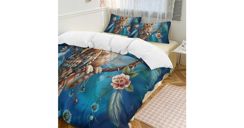 TOWINSFB Fantasy Dream Catcher Owl Duvet Cover Set, 3 Piece Microfiber Bedding Set with 2 Pillowcase