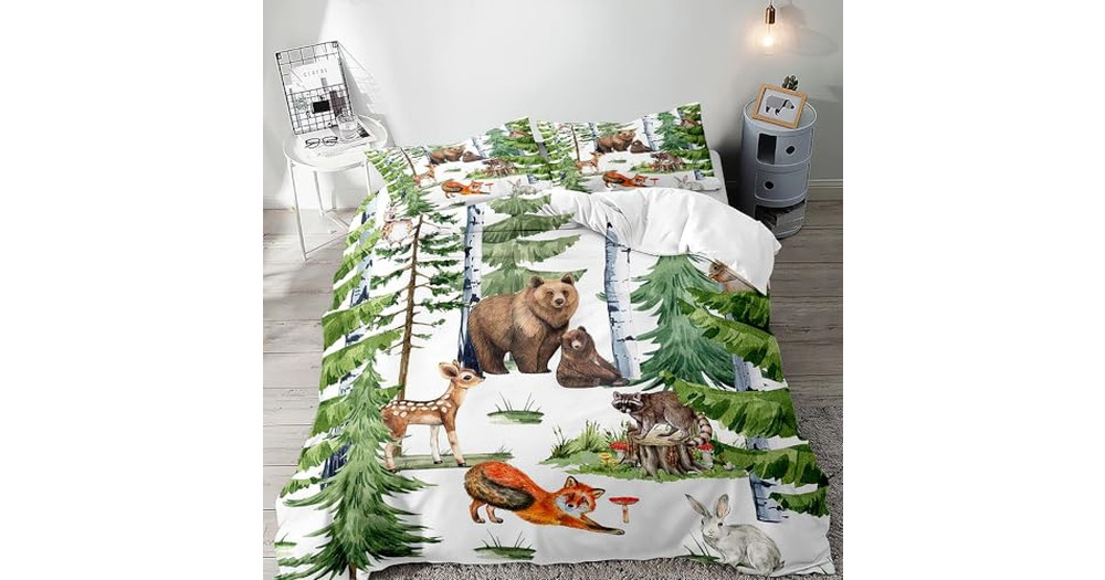 LUVIVIHOME 2PCS Deer Bear Duvet Cover Twin, Toddler Baby Boys Girls Kids Bedding Set, Cute Fox Rabbi