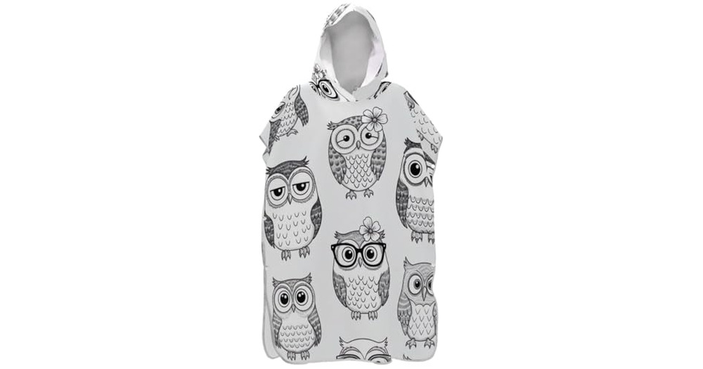 Joisal Cute Owl Gray Surf Poncho Changing Robe for Adul Hooded Swim Towel Cute Absorbent Unisex Adul