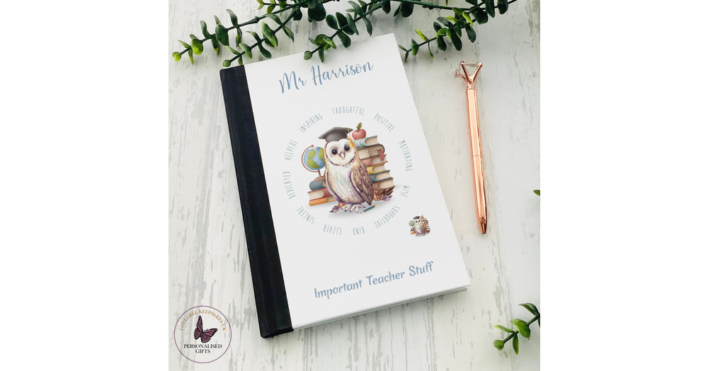 Personalised Teacher Owl Notebook, University Gift, End Of Term Gifts,  Leaving Gift, Personalised J