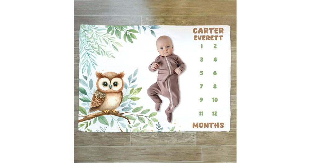 Personalized Owl Milestone Blanket: Plush Baby Boy Gift