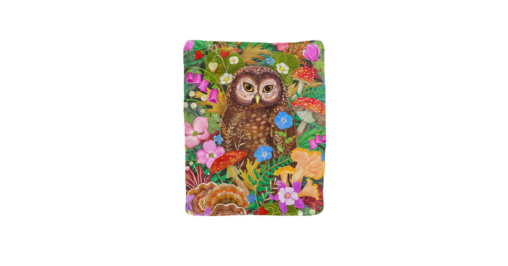 Owl in The Woods Floral and Mushroom Lux Fleece Printed Blanket with Sherpa Backing - 50" x 60&