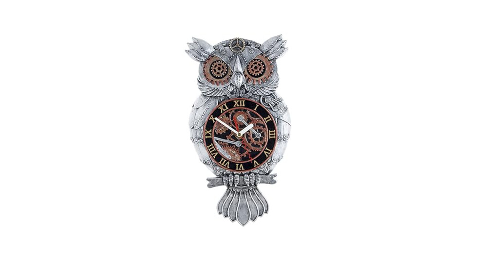 YJSG Wall Clock Owl,Steampunk Owl Wall Clock Imitation Metal Wall Clock Hand-Painted Carving Resin W
