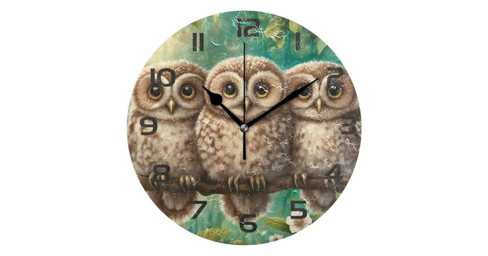 Flradish Three Owls Wall Clock, 10 Inch Silent Non-Ticking Round Wall Clock Battery Operated Numbers