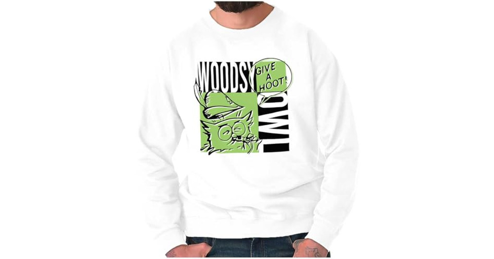 Brisco Brands Woodsy Owl Give A Hoot Whistle Sweatshirt for Men or Women White