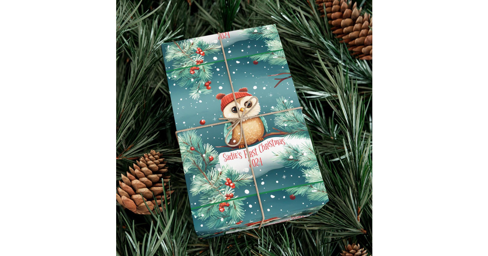Personalized Baby's First Christmas Gift Wrapping Paper, Owl Baby Gift Wrapping Paper, New Paren