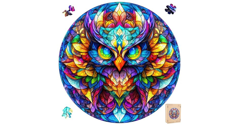 Wooden Puzzle for Adults, Stained Glass Owl Puzzles, 500 Pieces Jigsaw Puzzles Unique Animal Shape P