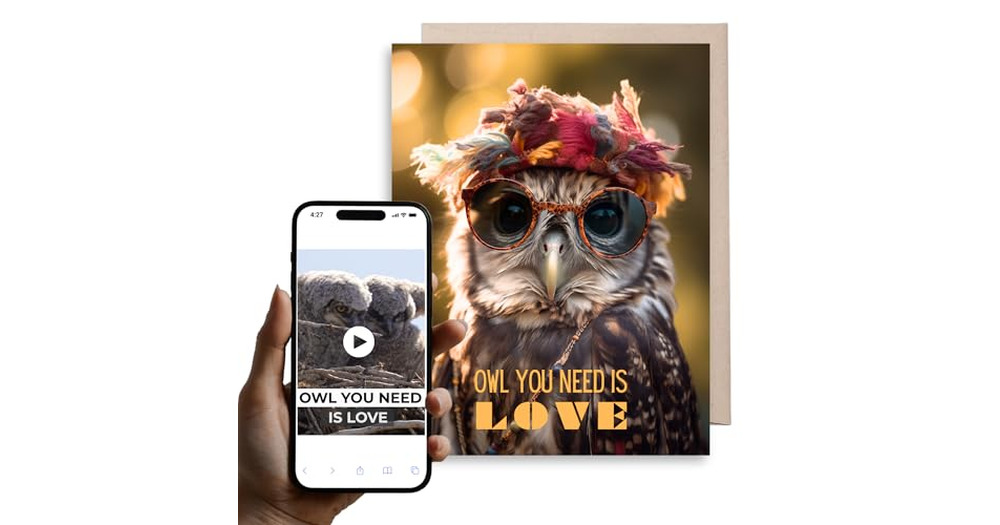 Magic Greetings - Cute 'Owl You Need Is Love' Everyday Card - Interactive Video Card - for