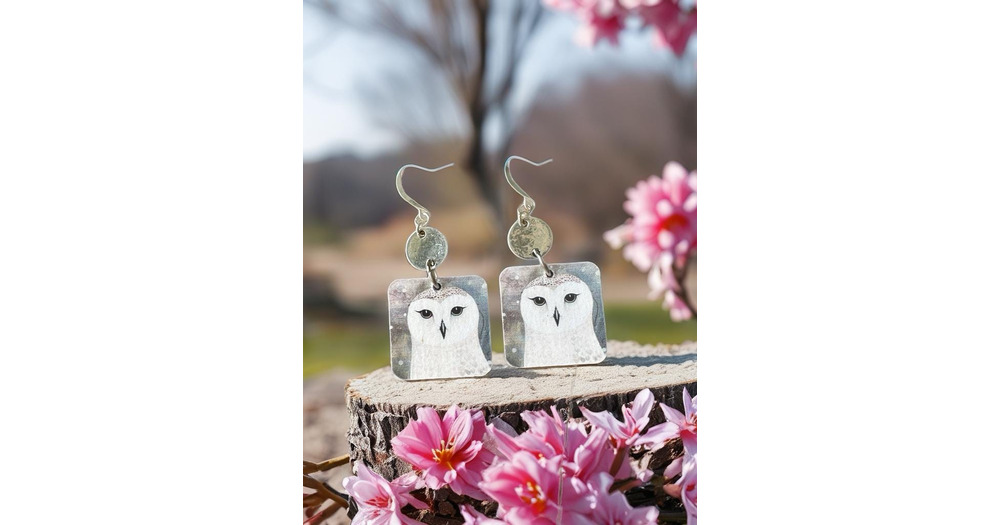 Sweet Owl Print Earrings, REVERSIBLE, Sterling or Stainless Wire, Gift, Handmade, One Inch Square