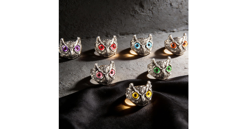 Owl Adjustable Ring | Gothic Animal Ring | Vintage Style Open | Size Statement Ring | Colorful Eyes