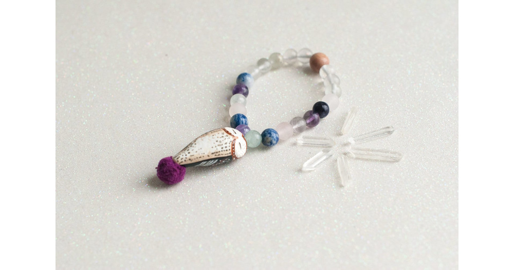 Sacred Barn Owl Mala Bracelet: CALMING ENERGY | Amethyst, Fluorite, Sodalite | A Creature of One Wil