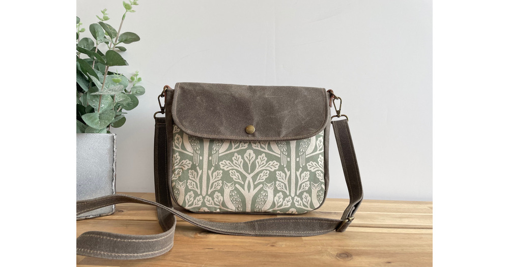 Owl and Oak Tree Waxed Canvas Messenger Bag: Screen Printed Flap Satchel