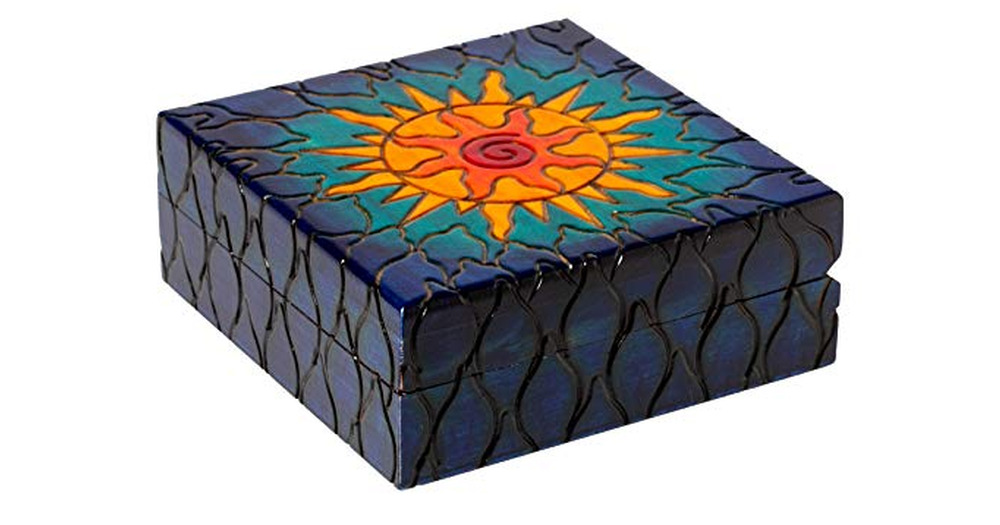 Artisan Owl Polish Handmade Solar Wind Wooden Box with Vivid Colors
