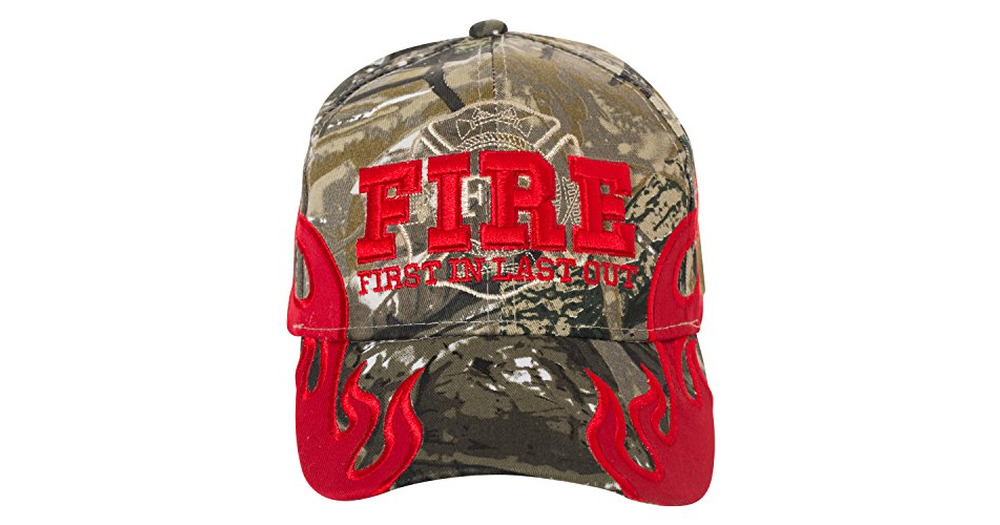 Artisan Owl "FIRE First in Last Out Cap with Red Flames Embroidery - Adjustable Hook and Loop C