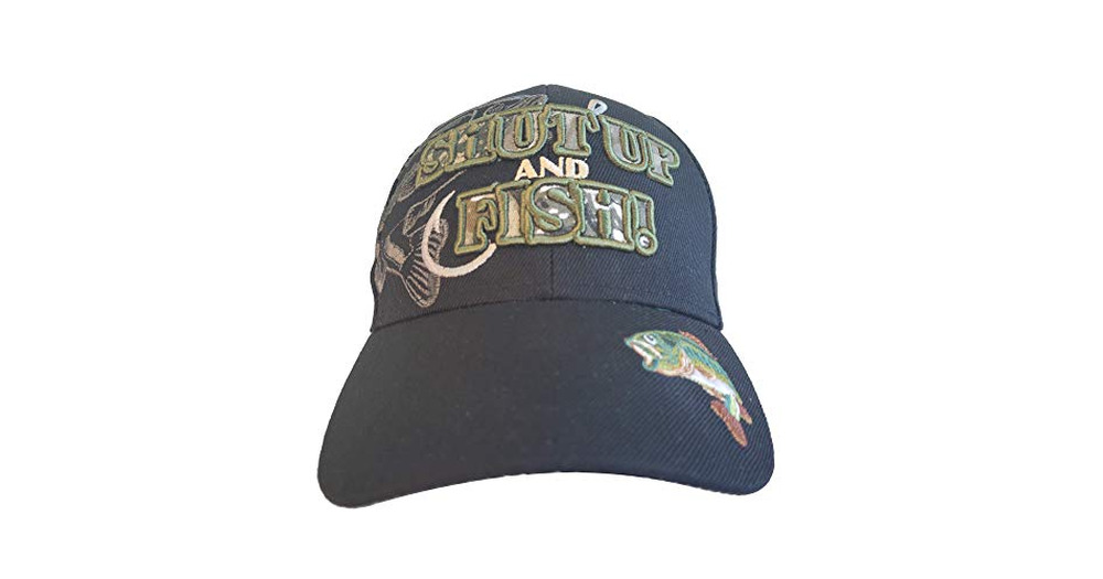 Artisan Owl Shut Up and Fish! Embroidered Fishing Cap - Adjustable Hook and Loop Closure (Black)