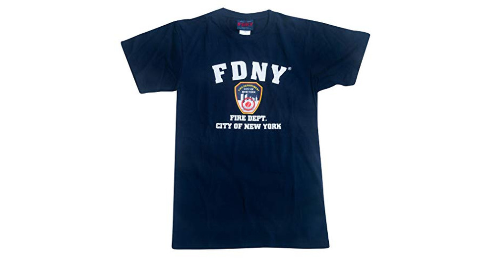 New York Fire Department Style T-Shirt with New York City Logo, NavyBlue (Large)