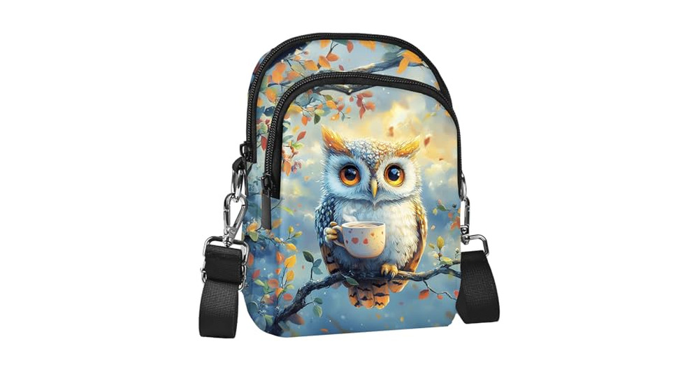 Owl Small Crossbody Bags for Women Cell Phone Purse Lightweight Over Shoulder Bags with Adjustable S