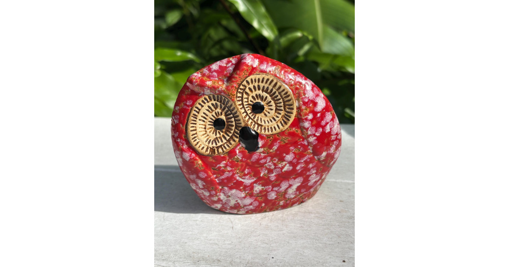 Vintage Small Owl Ceramic Red Splatter Decor Figure