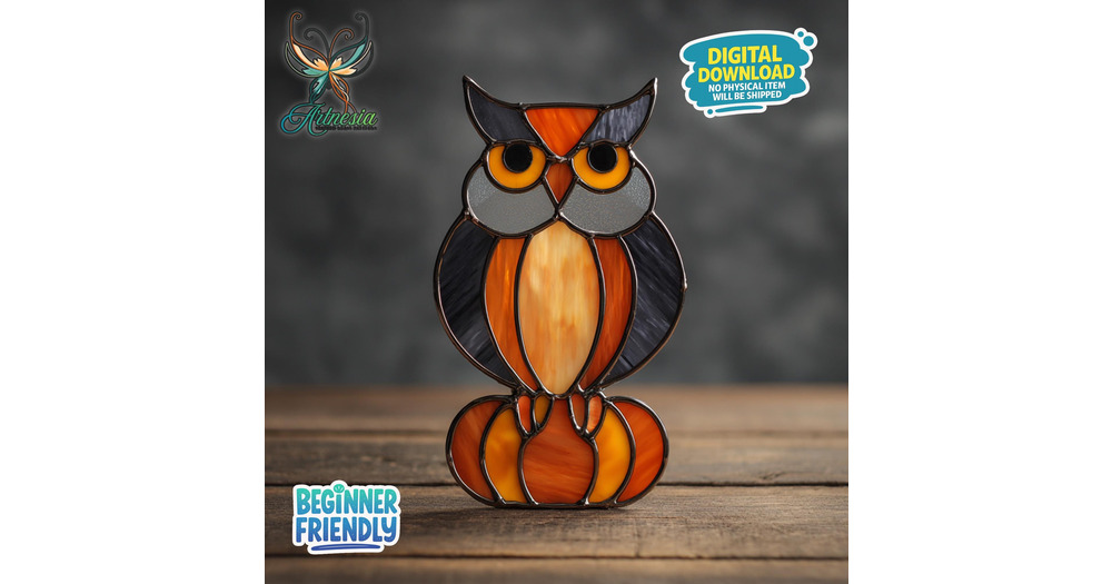 Owl On Pumpkin Stained Glass Pattern, Owl Suncatcher, Halloween Owl Stained Glass, Suncatcher Templa