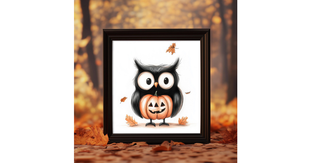 Cute Halloween Owl Print, Pumpkin Owl Wall Art, Fall Autumn Decor, Animal Illustration, Kids Room Ar