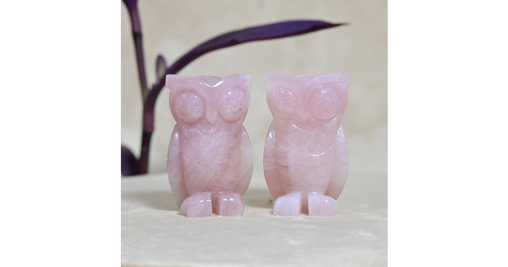 Hand-Carved Rose Quartz Owl Pair: Healing Crystals, Love & Wisdom