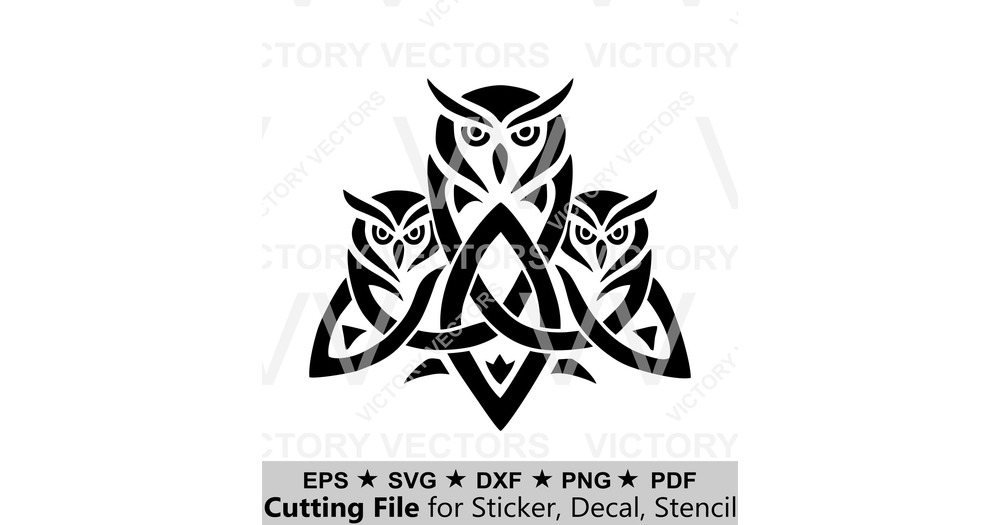 Celtic Owl Bird Trio Knot Tribal Vector File for Cut, Print, Vinyl, Laser, SVG, Cricut, Silhouette d