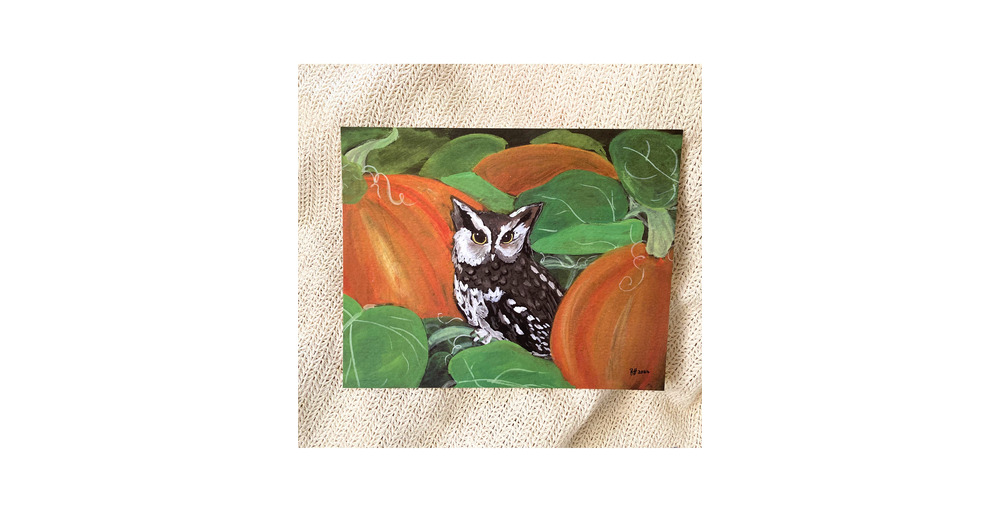 Southern Screech Owl gouache print, watercolor art, nature illustrations, bird painting, Halloween a
