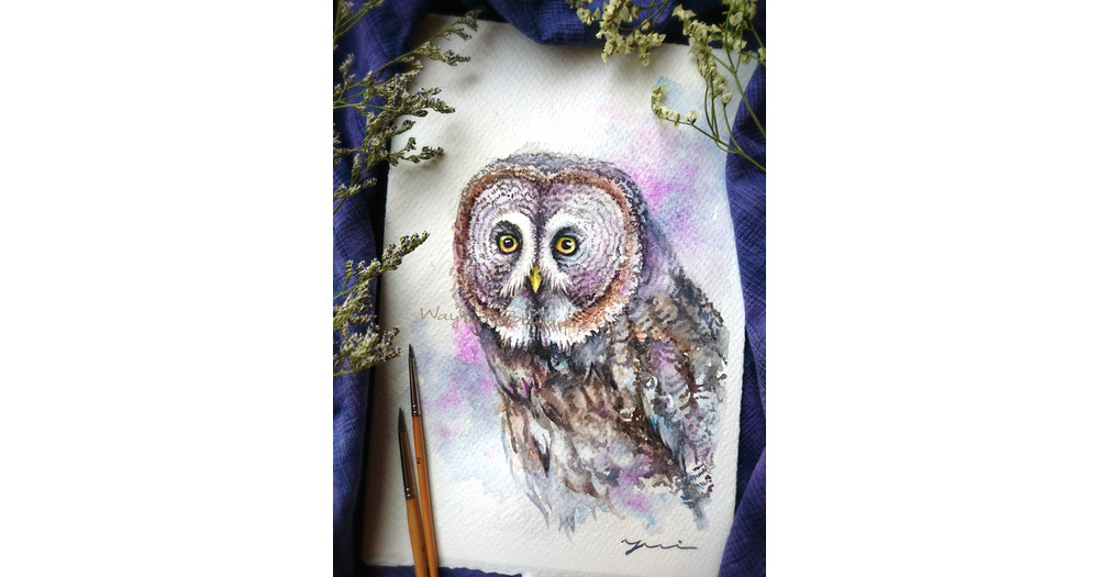 Great grey owl - ORIGINAL watercolor painting 7.5x11 inches