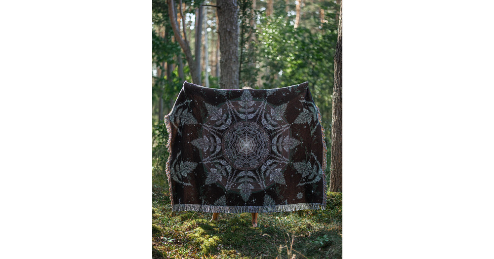 Dark Green Forest Owl Mandala Woven Throw Blanket, Boho Cotton Tapestry, Shipped From US
