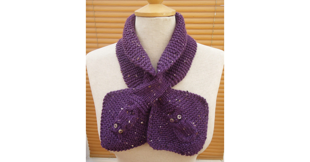 Knit Owl Bow Tie Scarf: Purple Wool Ascot Scarf