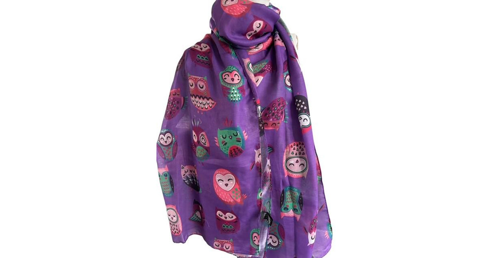 Ladies purple scarf with cute owl design, bn, Christmas, stocking filler, birthday, gift