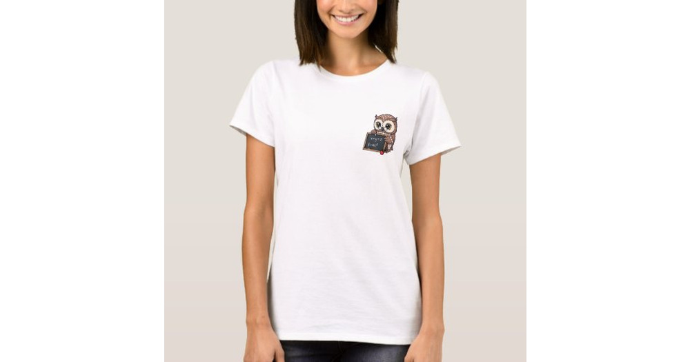 Cute Wise Owl Teacher Cartoon Character with Chalk T-Shirt